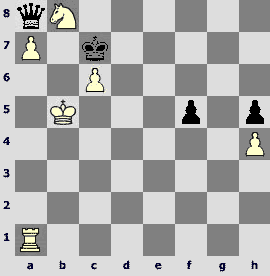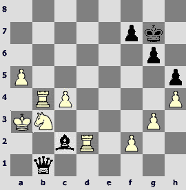 47...Јxc2 48.a6 Јxf2 49.c5 Јf3 50.a7 Јa8 51.¦a4 ўf6 52.c6 ўe7 53.¦a6 ўd6 54.ўb4 ўd5 55.ўb5 f6 56.¤c5 g5 57.¤d7 ўd6 58.¤b8! ўc7 59.¦a1 gxh4 60.gxh4 f5