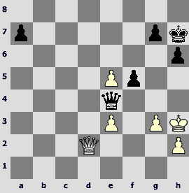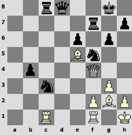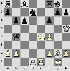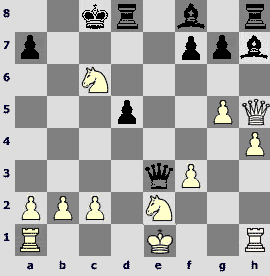 In conclusion, let me show you a very nice game. Black's queen got into a scrape. However, that tragicomic situation seems to be typical of the studies but not of the practical game.