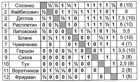 Турнир, принесший юбиляру звание мастера спорта СССР, состоялся в сентябре 1965 года в Сухуми. Чемпионат ЦС ДСО «Буревестник» был одновременно полуфиналом чемпионата СССР. Победителем соревнования стал Марк Тайманов, 2-3 места разделили Лев Полугаевский и Эдуард Бухман, на четвертом месте оказался Анатолий Быховский. Генна Сосонко разделил пятое-седьмое места. Спустя два месяца четверка «сухумских» победителей выступила в финале 33 чемпионата СССР в Таллинне, где тоже не затерялась: Полугаевский занял второе место (вслед за Леонидом Штейном), Тайманов – третье.