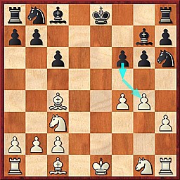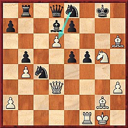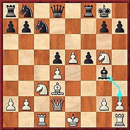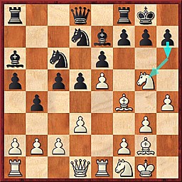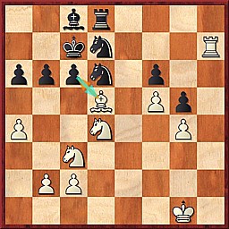 15.h3 15...Bh5 16.0–0 Bg6 17.Nb5 Nba6 18.Nd6 h6 19.Nf3 Ne6 20.Kh1 Rb8 21.Ng1. Сильнее 21.g3 Bh7 22.Nh4. После хода в партии и дальнейших обоюдных неточностей белым для реализации перевеса потребовалось еще 20 ходов.