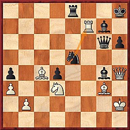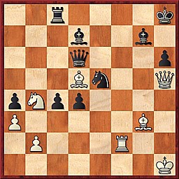 38...Bg4 39.Qh4 Qg6?? Невероятный, но вполне объяснимый в таком хаосе "зевок". Сохраняло материальный перевес и шансы на выигрыш 39...Be2 40.Qe4 Qg6 41.Qxg6 Nxg6.