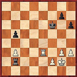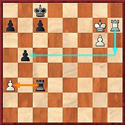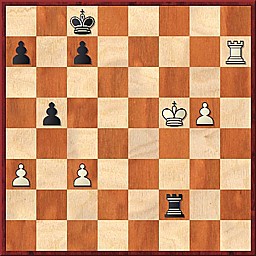 Беда черных в том, что их король отрезан и не может помочь своим пешкам, например: 16...c4 17.Kf5 c3 18.Ke4 c2 19.Rf1 b4 20.Kd3 b3 21.Kc3+–.