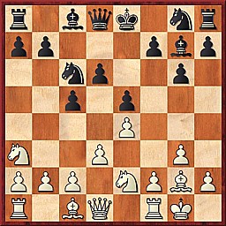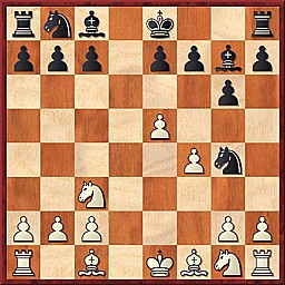 1.e4 e6 2.d3!? d5 3.Nd2 Nf6 4.Ngf3 c5 5.g3 Nc6 6.Bg2 Be7 7.0–0 0–0 8.Re1 b5 9.e5 Nd7 10.Nf1 a5 11.h4 b4 12.Bf4 Ba6 13.Ng5!