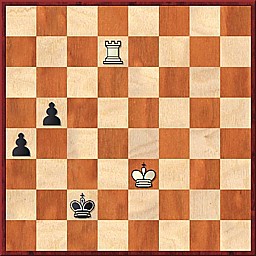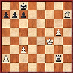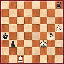 Однако проще всего выигрывало немедленное движение короля, несмотря на угрозу пешке "а2". 1.Kf5 Rf2+ (не спасает 1...Kd8 2.g6 Ke8 3.Kf6 Rf2+ 4.Kg7 Rg2 из-за 5.Rh6! c5 6.Kg8 Rxa2 7.g7 Rg2 8.c4!) 2.Ke6 Re2+ 3.Kf6 Rf2+ 4.Kg7 Rxa2 5.g6 Kd7 6.Kg8+ Kd6 7.Rh5! Rc2 8.g7 Rxc3 9.Kf7 Rg3 10.Rh6+ Kd7 11.Rg6 Rf3+ 12.Rf6 Rg3 13.g8Q Rxg8 14.Kxg8 b5 15.Kg7 c5 16.Kg6.
