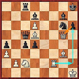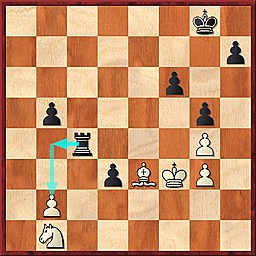 7...Rxa3. Черные полностью осуществили свою программу: обе пешки уничтожены. Теперь следует неизбежный обмен ладьи за пешку.