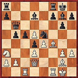 16...g5 17.h4 h6 18.Nf3 Nd7 19.Bd2 Kc7 20.Re1 b6. Американец венгерских корней делает естественные ходы, но вскоре его положение станет безнадежным.