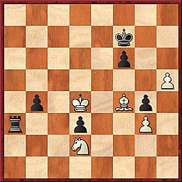 44.Kc5! Rb7 45.Nb3 Kg6 46.Kc4 Rb6 47.Nc5! Kh7 48.Kb3 d2 49.Bxd2 Rd6 50.Bf4 Rd1 51.Ne4. Только не 51.Kxb4? Rd4+ 52.Kc3 Rxf4 53.gxf4 g3–+.