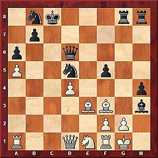 23.Nxd6+? Ответная ошибка. А после сильного маневра 23.Nfg5! белые перехватывали инициативу. Например, 23...fxg5 24.gxh3 Nc6 25.Qb3 Nxe3 26.fxe3 Re8 27.Bf3 или 23...Bd7 24.Nf7 Bh2+ 25.Kh1 f5 26.Nxh8 fxe4 27.Nf7. В обоих случаях лучшие шансы у белых.