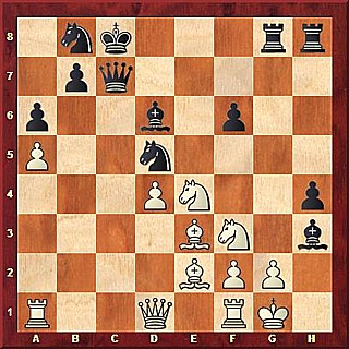 Глянешь на такое положение, и сердце радуется! Напоминает времена Петрова и Морфи. Но дальше уже требуется уменье. Позиции рокировок у обеих сторон не ослаблены, голыми руками не возьмёшь. Здесь заслуживало внимания 16.c4, чтобы побыстрее вскрыть линию "с", и после 16...dxc4 17.Nxc4 g4 18.Nfd2 h3 19.g3 у белых неплохие перспективы.